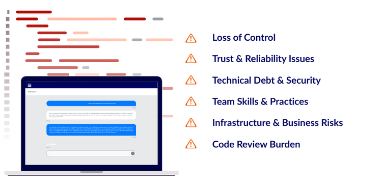 Speed comes with a cost. AI-generated code can introduce security vulnerabilities, follow insecure patterns, or hide flaws you won't catch immediately. Quick code generation often creates technical debt that compounds over time. Dependency bloat is another risk, as AI may suggest packages or libraries that are not strictly necessary, adding complexity to the tech stack. This can make systems harder to maintain and evolve over time. Debugging can also become more challenging, since understanding the behavior of AI-generated code often requires additional effort and context.